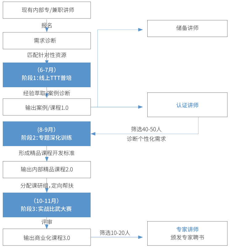 欧派集团的内训师体系,绝非仅运作于简单的课程开发与授课安排,而是被系统性地定位为组织知识管理、经验传承、文化塑造与人才孵化的核心枢纽。其覆盖的内容之深,范围之广,足以帮助企业人才在提升个人专业能力的同时,拓展全局视野,获得丰富的发展机会。 欧派内部课程体系 推动知识的萃取与标准化 内训师的首要使命,是深入业务一线,将分散在优秀员工头脑中的隐性知识、成功经验与技术诀窍,系统性地挖掘、梳理、提炼与验证,最终转化为可复制、可推广的标准化课程、操作手册、案例库及解决方案。与此同时,内训师在项目实践中也不断积累、提炼出有价值的知识成果,助力业务持续优化。 实现文化传播与标准建设 作为欧派文化的“布道者”与践行标杆,内训师通过生动的案例教学、经验分享与文化研讨,将“追求完美”的工匠精神、“客户至上”的服务理念以及“合作共赢”的团队文化,以最接地气的方式传递给每一位员工。在文化传承的同时,内训师团队也系统推进了能力标准与课程体系建设,以全方位支撑内部人才培养需求。 为高潜人才拓宽成长路径 内训师体系本身就是一条重要的人才培养通道。从选拔、培养、认证到激励,内训师的成长过程,实质上也是对高潜人才的深度赋能。通过备课、授课与辅导他人,他们的系统思维、沟通表达、问题解决与领导力等核心能力也得到了全面锻炼。正因其重要价值,集团高层高度重视内部讲师的储备与培养。公司内部由董事长亲自牵头,集团总裁、各事业部总经理及部门高管纷纷加入讲师团队。同时,众多优秀的业务骨干也正是在担任内训师后,视野更加开阔、能力日益完善,从而迅速成长为了部门负责人乃至更高层级的管理者。 02 构建闭环:形成长效“选育用留”生态 欧派内训师体系之所以能够成功,根本在于其打造了一个完善、富有内生动力的“选、育、用、留”闭环生态系统,形成了可持续的运作机制。其中,集团通过从储备讲师到认证讲师、再到专家讲师的递进式培养路径,分阶段开展培训与实战演练,确保讲师队伍在专业性与实战能力上不断跃升。 精英讲师培养与认证流程图 严选:精准定位,多元画像 摒弃“能讲就行”的粗放式标准,欧派构建了基于“专业深度、分享意愿、表达潜力、文化认同”的多维度选拔模型。选拔流程涵盖业务部门推荐、个人申请、试讲评审及综合评估等环节,确保入选者既是业务专家,又是乐于分享、善于传播、能够点燃组织智慧的“火种”。 同时,集团针对不同层级(如新晋、骨干、资深、金牌)及专业领域(如研发、生产、营销、服务、职能)设定了明确的胜任力标准,以进一步实现人才的清晰定位与分层发展。 精育:分层赋能,实战锤炼 欧派为内训师量身打造了阶梯式培养路径,分阶段、重实践,旨在激发讲师潜能、打通成长通道。在“醒师”阶段,集团通过菜单式诊断,结合线上学习技术开展普适性培养;在“成师”阶段,设置小专题培训,推进讲师的分层提升;在“优师”阶段,组织讲师实战比武大赛,接受市场检验,进一步强化其授课能力与业务理解。 集团内部精英讲师培养内容框架思路 善用:精准匹配,价值创造 集团搭建了“内训师—课程—需求”智能匹配平台,助力培训资源实现高效配置。培训发展部依托年度培训计划、业务部门即时需求和人才发展项目,精准调度内训师资源,确保培训供给与实际业务场景高度契合。在此基础上,内训师不仅承担常规授课任务,更深度参与企业战略进程,在持续提升课程质量的同时,推动培训内容与业务需求深度融合。 培养关键人才 在集团研发、计划技术、精益管理等核心领域的人才培养中,内训师承担起培养关键岗位人才、助力其专业精进的“导师”角色。 内训师赋能人才培养 推进梯队人才项目 在“MiniMBA计划”(高管后备)、“雄鹰计划”(中层骨干)和“新羽计划”(应届生)等培养项目中,内训师作为核心课程讲师或成长导师,深入推动人才梯队建设。 帮扶业务前线 围绕全案设计、流程变革与技能升级等实际业务需求,内训师团队快速响应,开发并交付定制化培训方案。 造就线上知识宝库 通过鼓励内训师将课程精华提炼为微课、知识胶囊与案例解析,线上学习平台(E橙平台)的内容得以持续丰富,实现了知识的灵活获取和高效复用。 激励:多维认可,长效发展 欧派深谙“用爱发电不可持续”,高度重视内训师在教学实践中所获得的“被需要”“被尊重”“能影响”的积极体验,将其视为职业幸福感的重要来源。为此,集团不仅搭建了多样化的展示平台,还积极开展丰富的拓展活动,使内训师在参与课程开发、案例萃取及一线教学之外,能够在岗位上实现更深层次的职业成长与价值认同。这种物质与精神并重、短期与长期结合的多维激励网络,为内训师队伍的长期发展奠定基础。 内训师激励网络 课酬激励 根据讲师级别、课程难度与授课效果,支付具备市场竞争力的课酬,体现专业价值。 荣誉体系 设立“年度金牌讲师”“最佳课程设计奖”“最具人气讲师”等荣誉称号,并在集团大会上隆重表彰,增强成就感。 发展优先 在晋升、评优、外派学习机会等方面,优秀内训师享有优先权,其培训贡献也被纳入人才评估体系。 资源支持 提供课程开发基金、专业书籍与外部学习机会等支持,助力其教学能力持续精